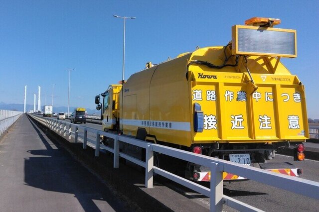 群馬県建設事業協同組合では、自社所有の路面清掃車(スイーパー)を使って、県管理道路の路面清掃を行っております。