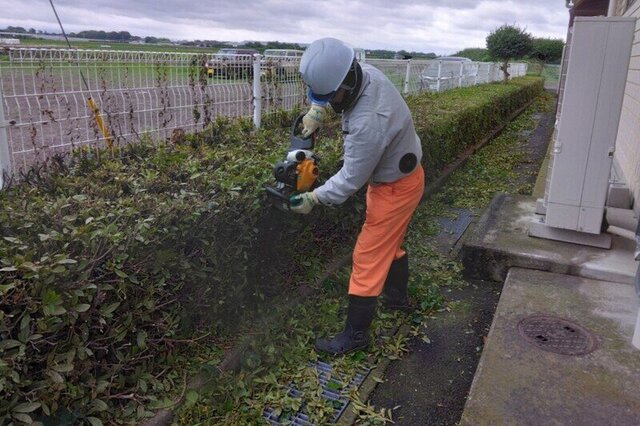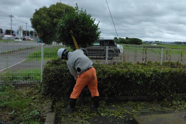 群馬県建設事業協同組合は、熱中症に注意しながら、県管理道路だけでなく日頃より敷地内もキレイに維持できるよう、安全作業で剪定作業等を行っております。