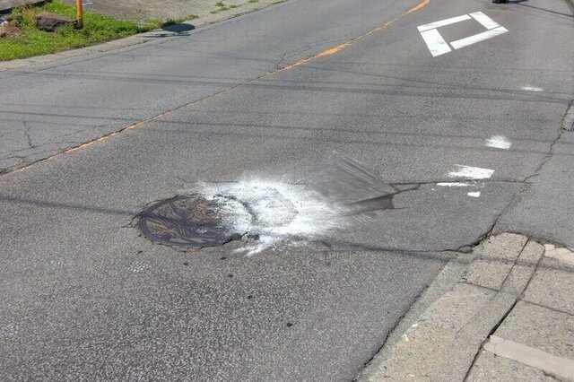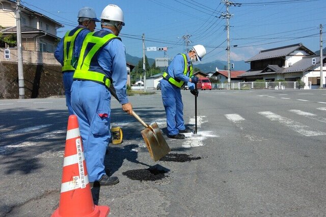 写真は、長野原町内において道路の穴埋めをした時の様子です。