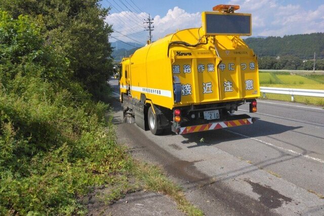 群馬県建設事業協同組合では、自社所有の路面清掃車(スイーパー)を使って、県管理道路の路面清掃を行っております。