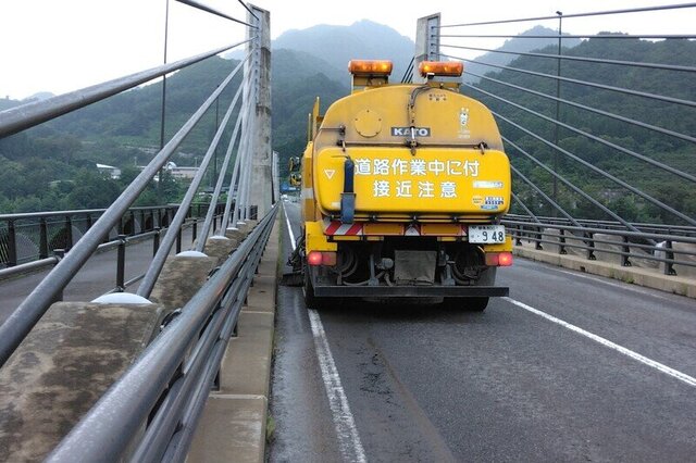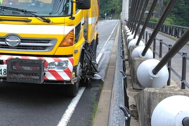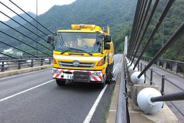 写真は、長野原町内の「道の駅八ッ場ふるさと館」近くの不動大橋を路面清掃した時の様子です。