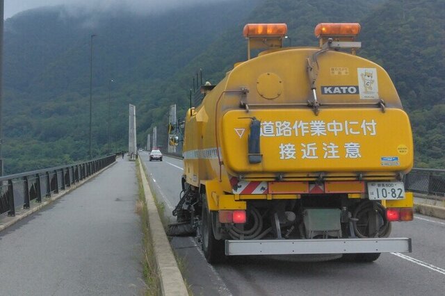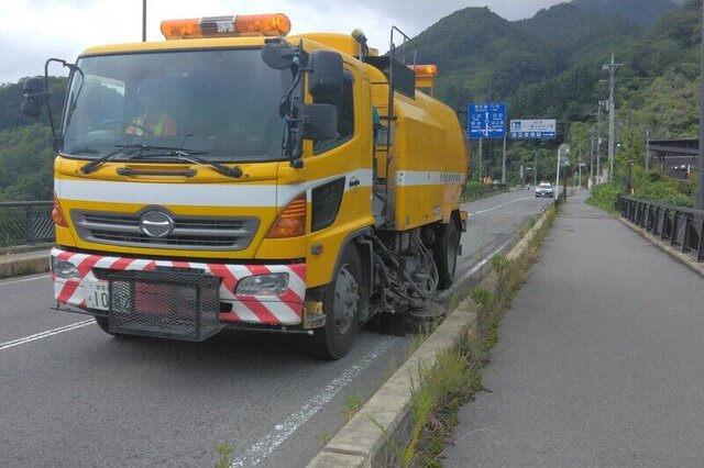 写真は、長野原町内の「道の駅八ッ場ふるさと館」近くの不動大橋を路面清掃した時の様子です。