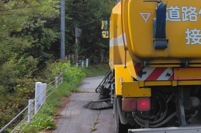 写真は、長野原町内の二度上峠を路面清掃した時の様子です。