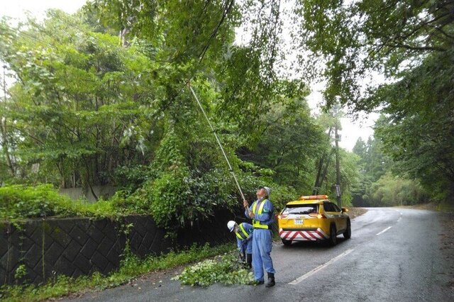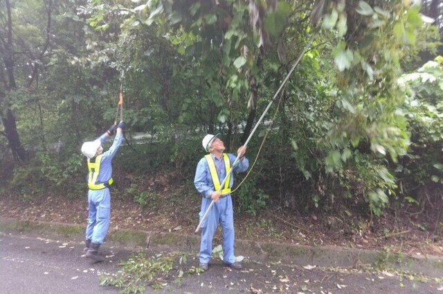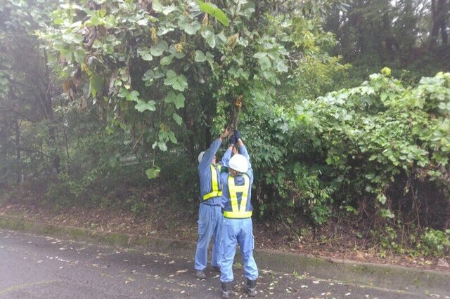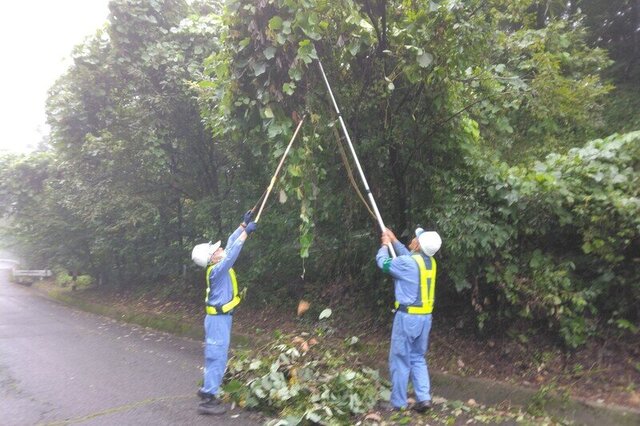 写真は、東吾妻町や中之条町において道路上にはみ出した枝を除去した時の様子です。