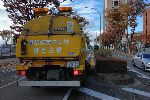 写真は、11月18日(火)に前橋市内の県庁前を路面清掃した時の様子です。