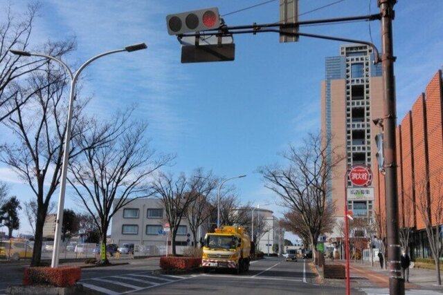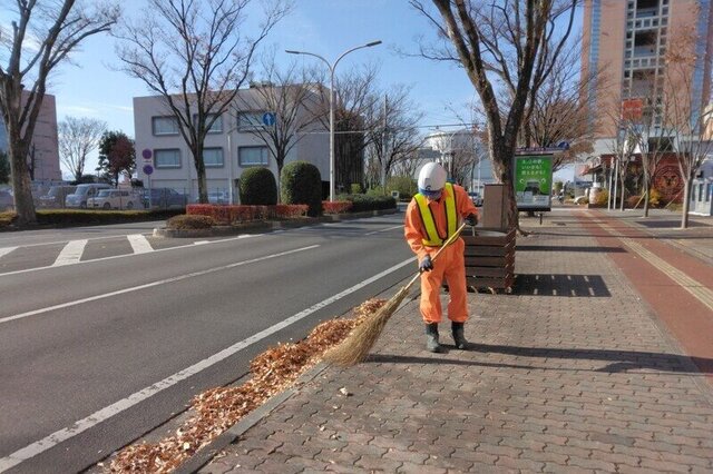 写真は、12月8日(月)に前橋市内の県庁前を路面清掃した時の様子です。
