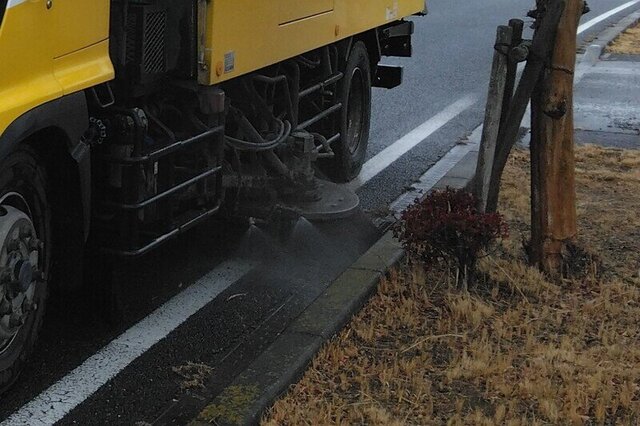群馬県建設事業協同組合では、自社所有の路面清掃車(スイーパー)を使って、県管理道路の道路脇に溜まった土や砂、ゴミや塵などを清掃しております。