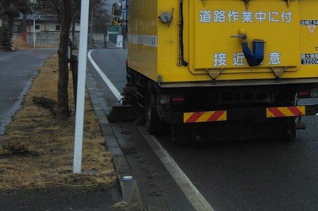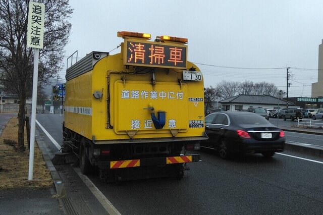 路面清掃作業中は、低速で移動しながらの作業となりますので、追突事故防止の為「適切な車間距離の確保」をお願い致します。