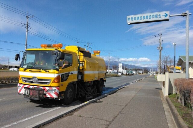 群馬県建設事業協同組合では、自社所有の路面清掃車(スイーパー)を使って、県管理道路の路面清掃を行っております。