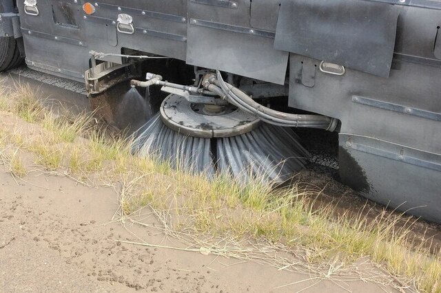 この時期は、冬季に散布された「スリップ止めの砂」や「落ち葉」をメインに清掃しております。