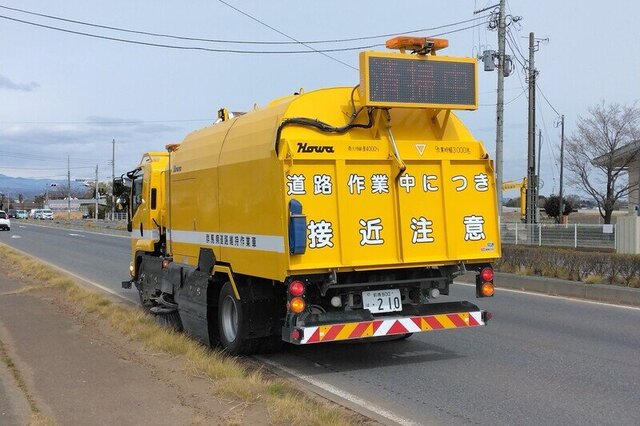 路面清掃作業中は、低速で移動しながらの作業となりますので、追突事故防止の為「適切な車間距離の確保」をお願い致します。
