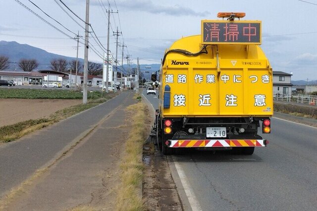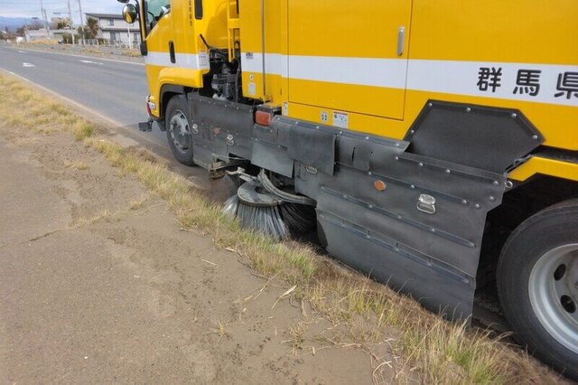 群馬県建設事業協同組合では、自社所有の路面清掃車(スイーパー)を使って、県管理道路の路面清掃を行っております。