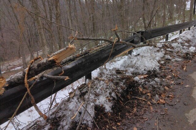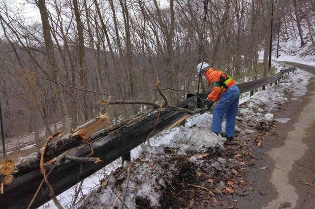 降雪量の多い地域では、雪の重さにより枝や竹が道路に垂れ下がったり、細い枝や弱った樹木が折れる事があります。