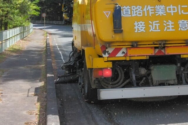 路面清掃作業中は、低速で移動しながらの作業となりますので、追突事故防止の為「適切な車間距離の確保」をお願い致します。